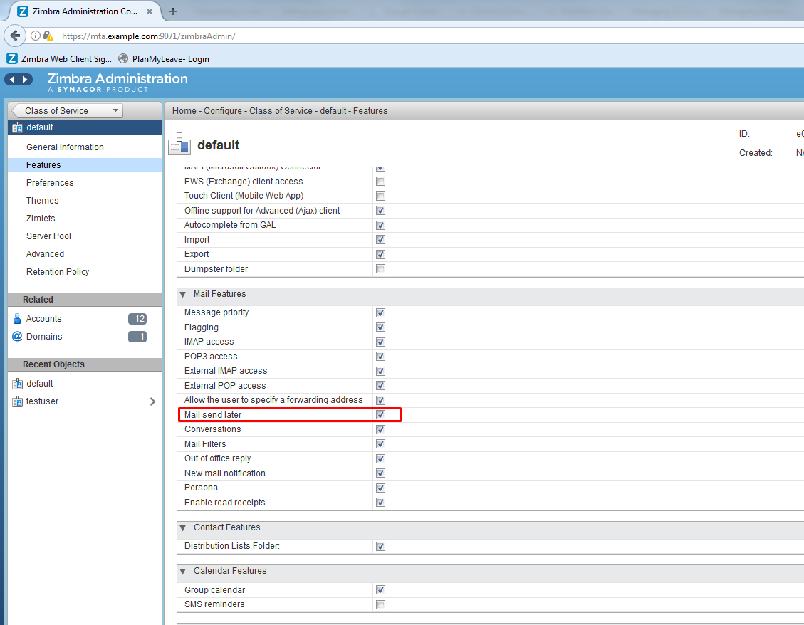 Check zimbraFeatureMailSendLaterEnabled enabled status